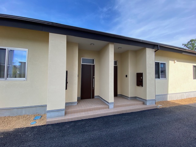 今月8月末頃から賃貸募集をします、当社貸主の平屋建の2棟だけの新築賃貸アパートです。玄関前の砂利を舗装して終了となります。生活環境が整った場所で、スーパーのツルヤ・丸の内病院も近く、ご興味ございましたら近日HPの詳細をUPいたしますのでご確認ください。各専有面積85平米前後の3ⅬⅮKでⅬⅮKと洗面所には床暖房付を設置しています。この周辺にはコインパーキングが無いので敷地内に来客用の駐車スペースを2台分無償でご自由にご利用いただけます。また、物置も設置しますので無償で季節のタイヤやゴルフ用品、キャンプ道具等にご利用いただけます。